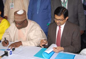 L-R: Minister of Water Resources, Suleiman Hussein Adamu, with the General Manager, RB West Africa, Dayanand Sriram, during the MoU signing between Dettol and Ministry of Water Resources on Thursday, March 14th, 2019 for Dettol Clean Naija Program Launch in Abuja.