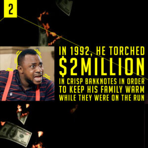 In 1992, he torched $2million in crisp banknotes in order to keep his family warm while they were on the run.