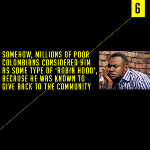 Somehow, millions of poor Colombians considered him as some type of ‘Robin Hood’, because he was known to give back to the community