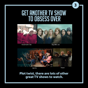 3. Get another TV show to obsess over: Yes, we know you absolutely love GOT but if you try just hard enough, you will find new TV shows that are just as great. After all, there are lots of other great TV shows to watch.