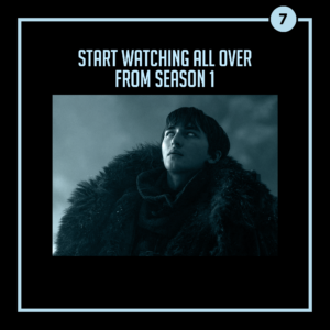 7. Start watching all over from Season 1: We know way too many people who are already set to binge-watch Game of Thrones all over again from season 1 and you can just decide to join them. In case, you are just not ready to say goodbye, finally to Game of Thrones, then this is the time to start over from season 1.