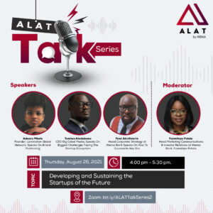 ALAT by Wema Bank, Nigeria’s first fully digital bank, will host the second session of its ALAT Talk Series on Thursday, August 26, 2021, via Zoom. The Talk Series is a virtual session that provides young Nigerians with a platform for the exchange of ideas and insights on technology, startups and finance, offering young Nigerian professionals a guide on how to develop and build successful ventures.