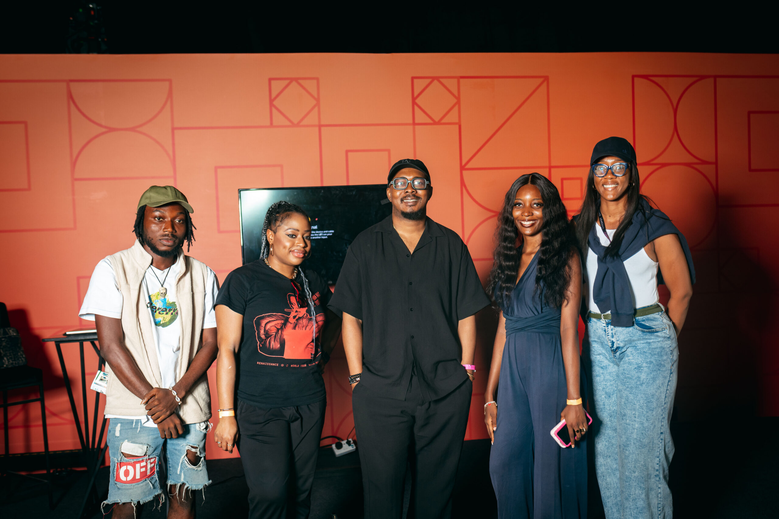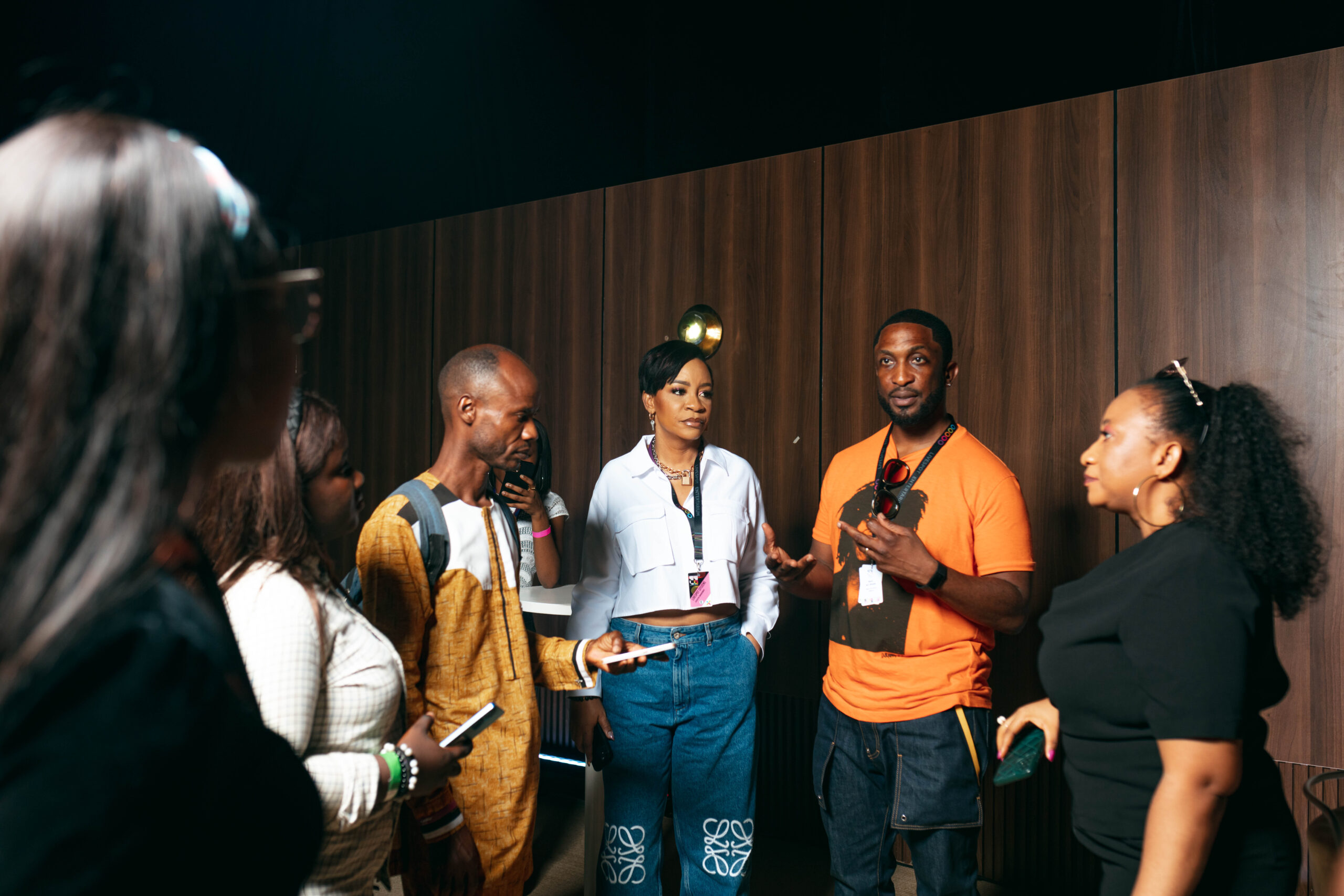 Founder, Livespot360, Deola Art Alade, Co-Foudder of Livespot360, Dare Art Alade, addressing the media for a private tour.L-R: Founder AA Studios, Anthony Azekwoh; CEO Slickcity Media, Malik Afegbua; CEO LV Partners, Ade Adekola; Visual Storyteller, Phisha Akinlabi Akinbulumo after a panel session GEN AI Disruption: Evaluating Applications, Risk, and Opportunities of AI in the Entertainment and Creative Landscape.