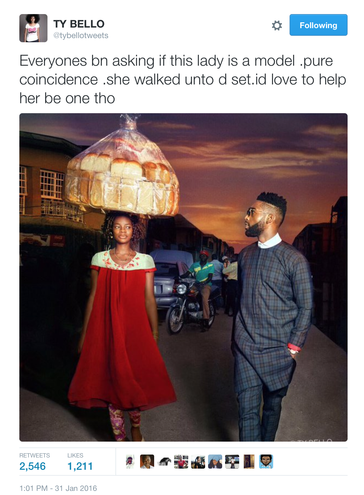 Days later, the pictures of the shoot surfaced on social media and everyone thought the bread seller was such a beautiful and graceful actress. The main thought that lingered was how an elegant model was made to gracefully balance the local bread tray on her head.