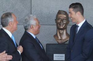 Yesterday, Cristiano Ronaldo’s hometown, Madeira Islands honoured him once again by renaming its International airport after him. The ceremony came with several weird occurrences – like a man dressed as Batman watching and waving to people from a balcony – but the one we can’t wrap our heads around is the bizarre bust that was unveiled.