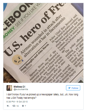 Business Insider reported that David Callaway, the editor-in-chief of USA Today gave a reason for the newspaper adopting emojis:
