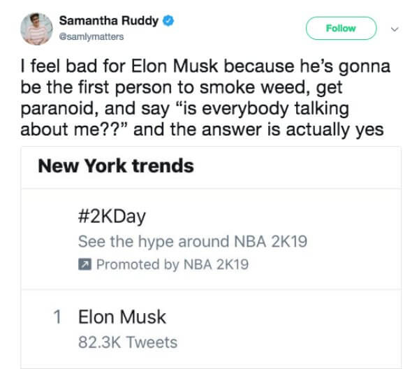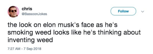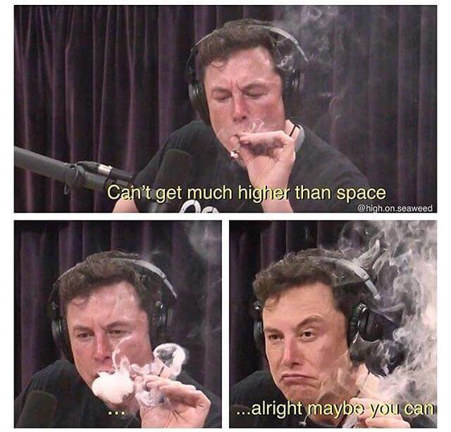 So, Elon Musk hit a blunt whilst wearing an ‘Occupy Mars’ T-shirt and I’m not even sure which part deserves my attention more. What we should pay attention to though, is Elon’s face after the sativa hit.