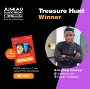 Mibanti’s tweet and search were a tad late, as Jumia Nigeria already announced the winners of the treasure hunt the week before. Gara Stephanie, a baker who resides in Abuja, Nigeria, got the latest iPhone, while Adegbayi Oluseyi, received a ₦200,000 voucher and one-year Jumia Prime free delivery for only ₦2,000.