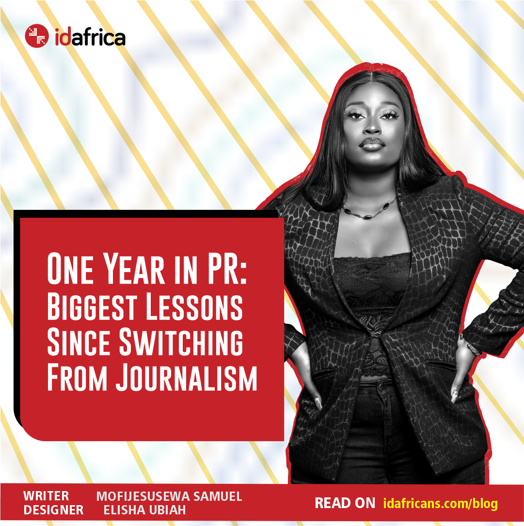 After my NYSC and a few internships, when I was officially ready to start my career, Adekunle advised again that I should start as a journalist. For two years, I wrote, covered events, learned spins and learned to write features in three hours. Then, on the 1st of August, 2021, I took on a new PR and Communications Associate role at ID Africa.