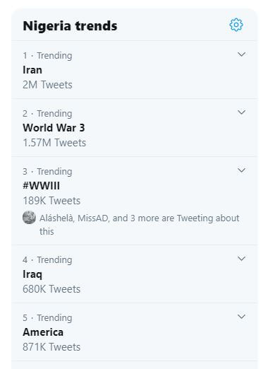 As is custom, I jumped on Twitter once I opened my eyes and… I started to see something about World War 3. I checked the trend list and it’s looking like this: