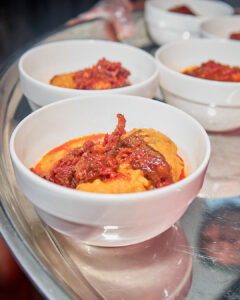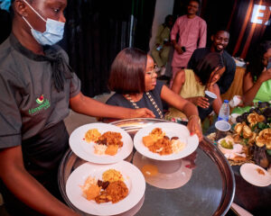 For the main course, guests enjoyed classic Nigerian jollof rice and fried rice accompanied by vegetable coleslaw, plantain, and sauced beef, as well as yam porridge. An intercontinental menu followed, with the tasting experience concluding with a delightful assortment of desserts.